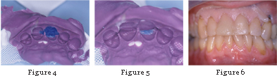 3.Remove the impression. Expect to remove the wax with the impression, then take out the wax (Figures 4 and 5). Once the wax has been removed, the tooth can be prepared for a bonded provisional (or economical final) restoration as desired. I prefer to Micro Etch or Air Abrade the host tooth (teeth) before bonding in the restoration. For this restoration* I would recommend the use of Prelude SE and Link (Danville Materials) as the preferred bonding agent. I would use Turbo Temp if this was intended to be a short term restoration; I would use Starfill 2B if this was intended to be a final or longer term restoration.