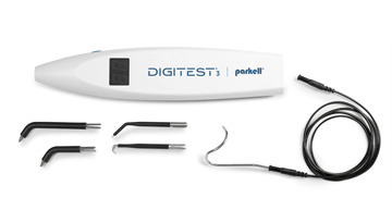 The NEW Digitest® 3 Pulp Vitality Tester is a hand-held, battery-powered diagnostic device that identifies a living tooth by stimulating it with a weak electric current. The unique Digitest 3 stimulus is designed to reliably trigger a patient response in a vital tooth with minimal discomfort.